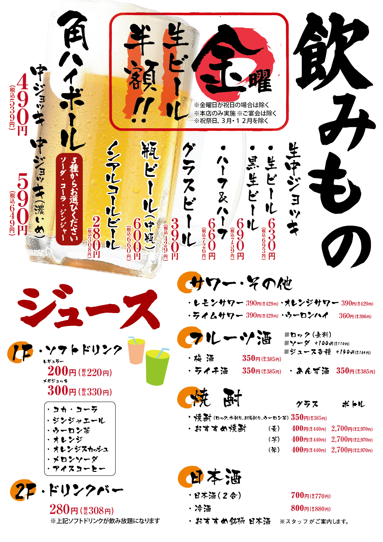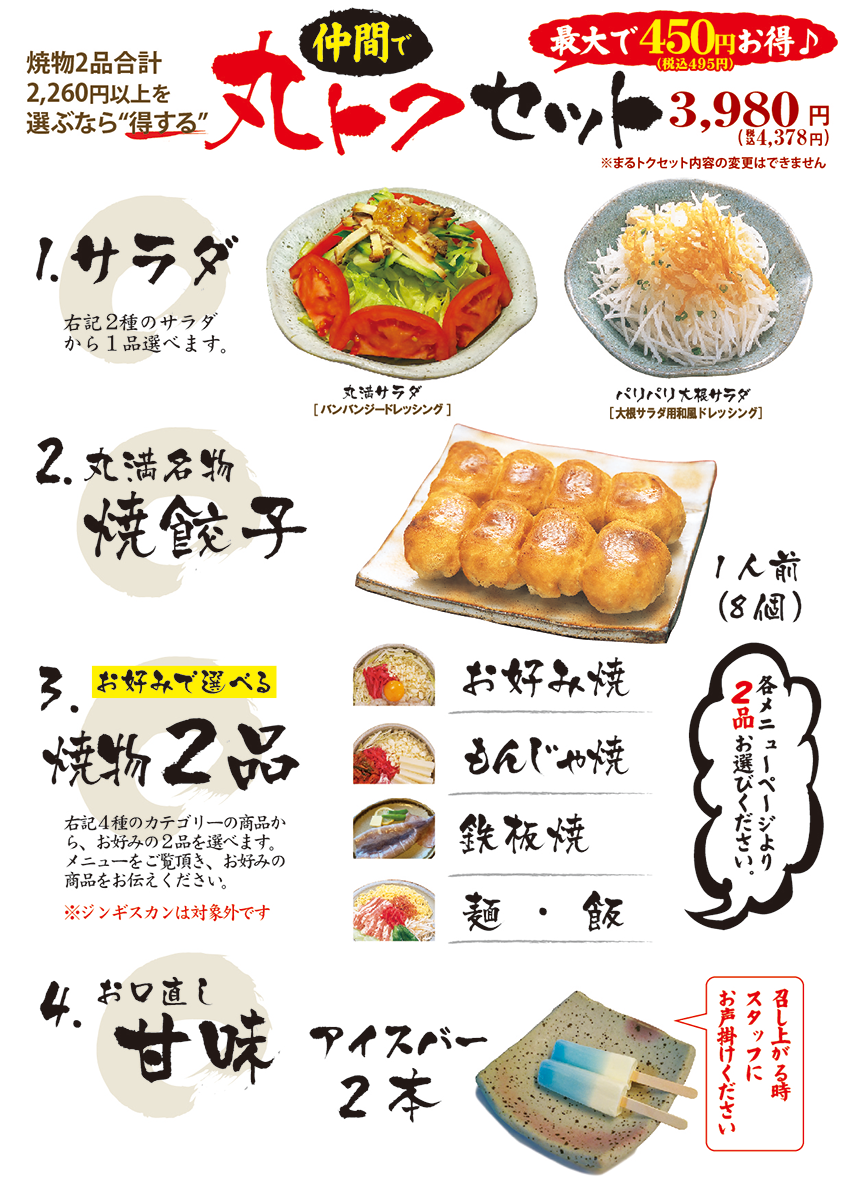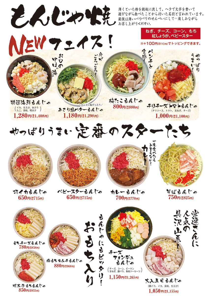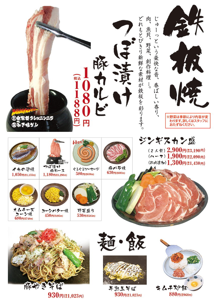 ご家族様とグループ様。3世代でお食事をされるお客様に最適です。1階で扱っている商品に加えて、お好み焼き、もんじゃ焼きを中心とした鉄板料理をお召し上がり頂けます。お座敷、掘り席、テーブル席と色々なタイプのお席をご用意しておりますので、用途に合わせてご利用ください。